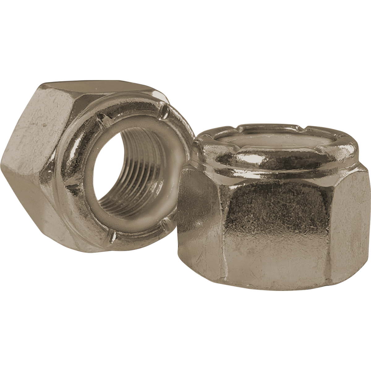 If vibration and movement are a concern the Nyloc nut is a great choice. A hex nut with a nylon insert designed to allow for a tighter hold and resistance against loosening from vibration and movement.
