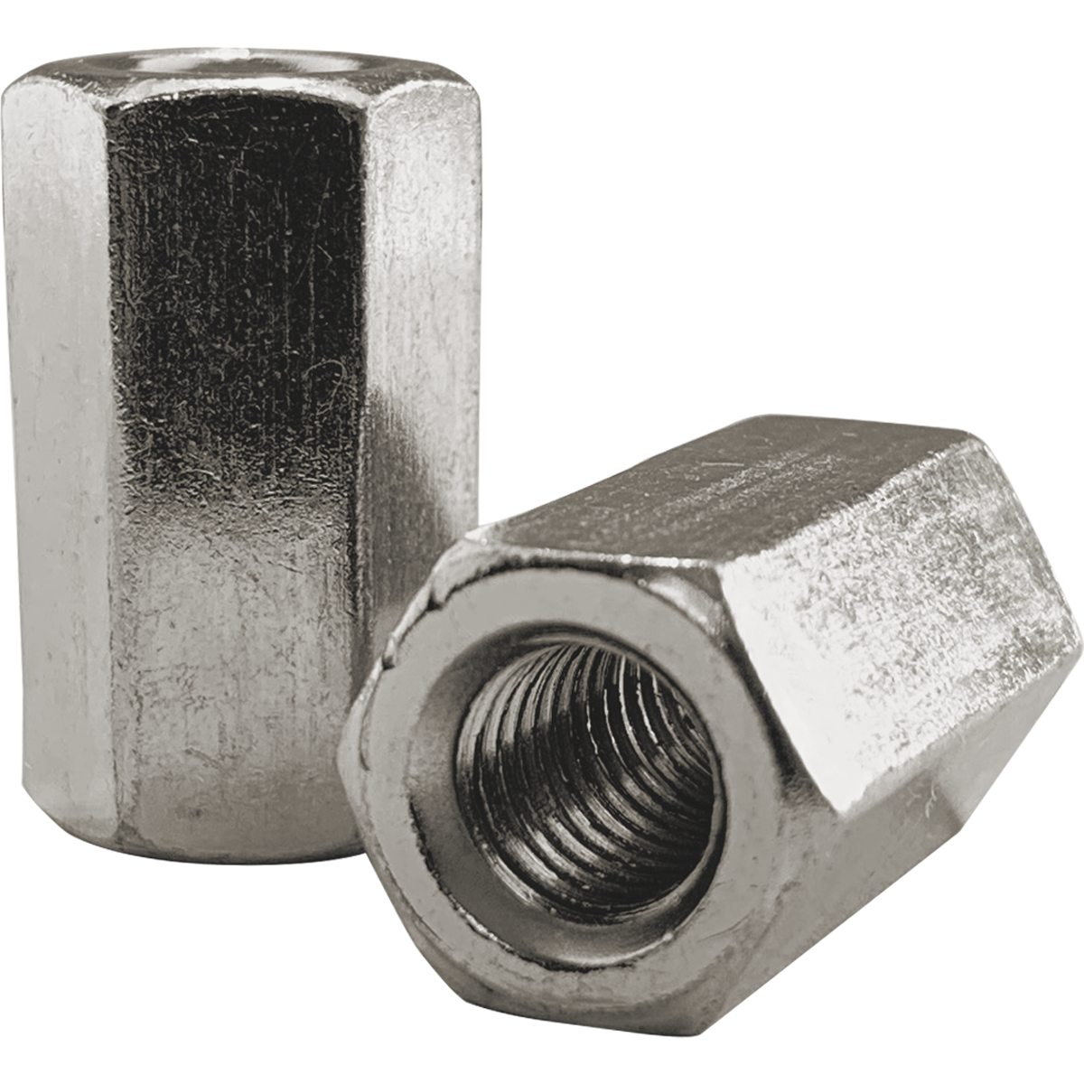 Connector nuts, also known as coupling nuts or extension nuts. Available in a circular or hexagonal profile in a variety of sizes and at great prices. Often used to join threaded bars and bolts together, they are available in a variety of sizes and materials. Available at Fusion Fixings in A2 stainless steel or bright zinc plated (BZP), with both offering levels of corrosion resistance.