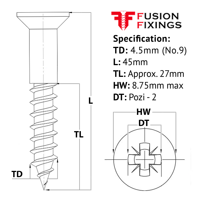 Part of a larger range of wood screws from Fusion Fixings. Quantities start from just one to as many as you need to get the job done, with bulk price discounts.