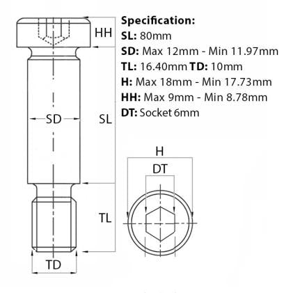 M10 (12mm) Socket Shoulder Machine Screw x 80mm