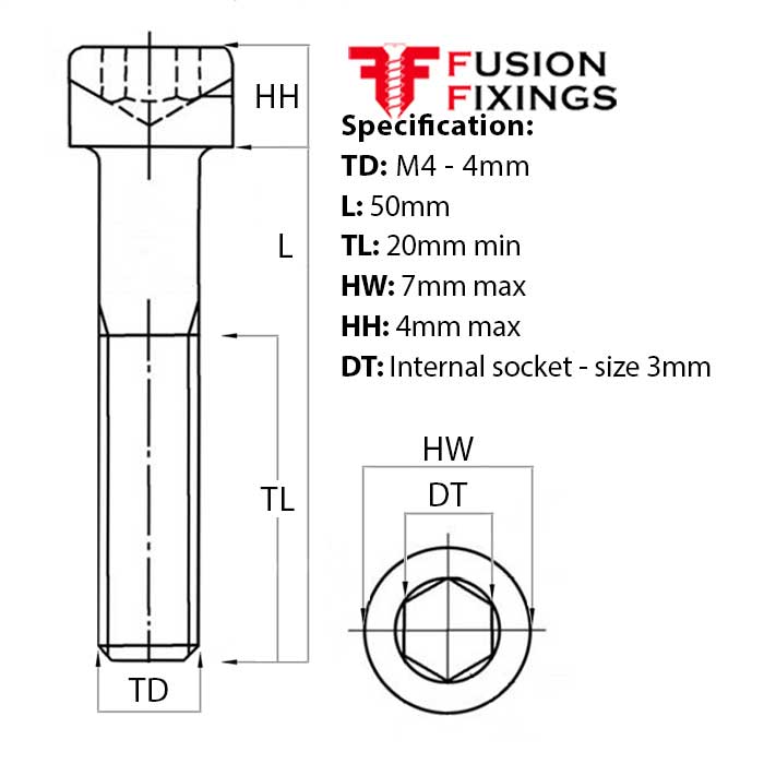 - Recess Type (DT): Internal hex drive (Size 3mm)