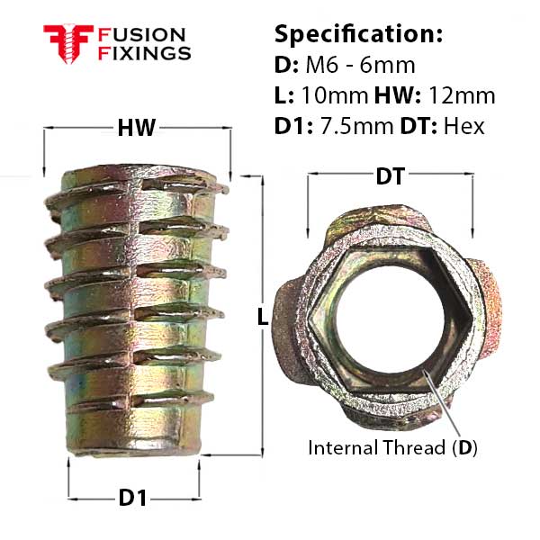 This M6 insert nut is part of a growing range of threaded inserts for wood available at competitive prices from Fusion Fixings.