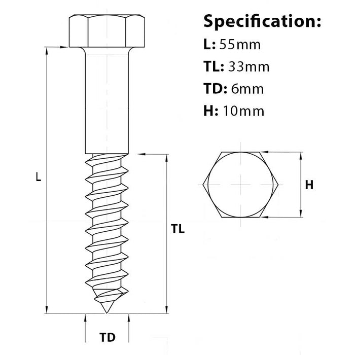 Hex head coach screws are heavy-duty screws designed for securing timber to timber, or timber to metal. The heavy-duty nature of the coach screw sees them commonly used in decking, fencing, roofing, and heavy joinery applications. The hexagonal head allows for higher torque using a spanner or socket for a firm, reliable hold.